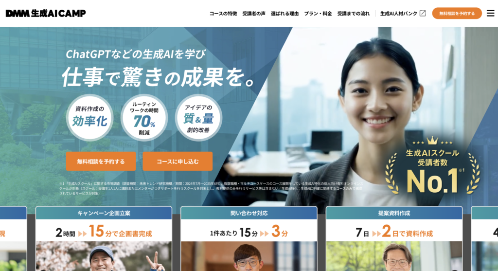 - 実務・開発に強い: DMM 生成AI CAMP