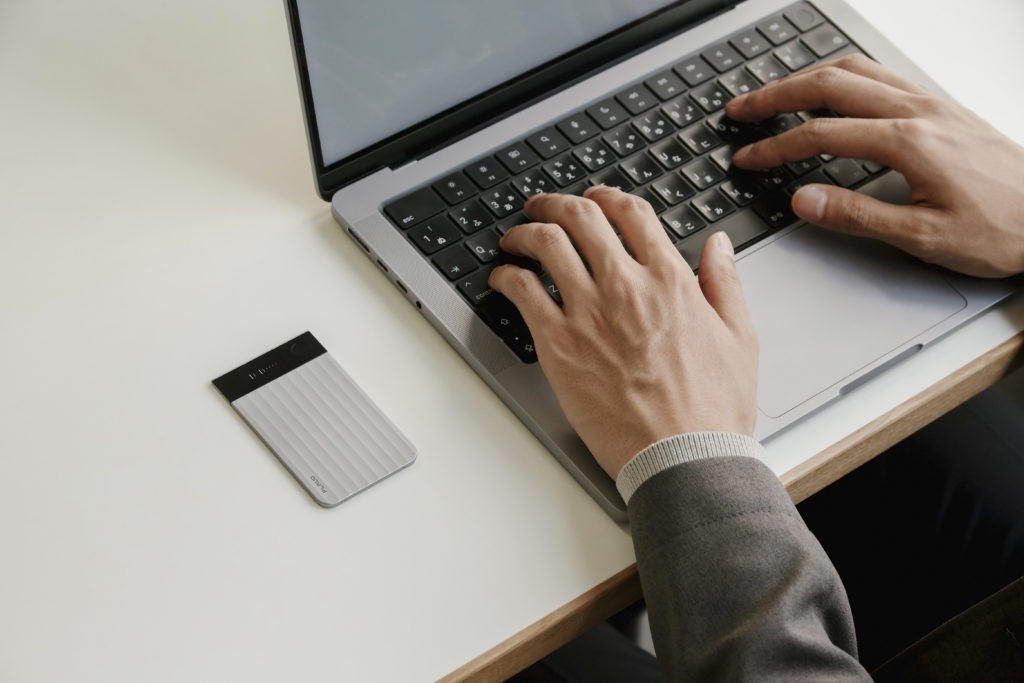 - デザインの匿名性: 薄さ2.9mmのカード型は、商談の場で相手に威圧感を与えません。